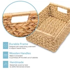 ✅ Convenient and Attractive - Whether it be by way of pure decor, storage, or organization for kitchen, pantry, or bathroom. This natural baskets with handles suit your home in every way. The rectangular baskets wicker is great for magazines, games, pet toys, media, household items. ✅ Natural & High Quality - Our wicker storage baskets for shelf are made of Water Hyacinth, was carefully handcrafted to perfection. It comes with an iron frame for sturdy storage. The wooden handles on both sides are not only pretty but to help you easy to carry the wicker basket. ✅ Ideal For Home - wicker basket with handle is an easy and affordable way to change the style of your home. With it's natural design, the basket storage wicker make nice neutral backdrops and can brighten your day as well as impress your guests. ✅ Medium Wicker Basket: 13.6"L x 9.5"W x 5.6"H. This wicker basket is convenient and easy to storage for drawers, shelves, desks, or anywhere in the house. Please note that this item is just single medium wicker storage baskets, is handmade and the sizes may vary ±1 inch. ✅ The Best Customer Service - With our famous 100% satisfaction, you can have peace of mind. If for any reason you're not completely happy with your purchase- if it breaks, if it's damaged in shipping, or any other reason - simply let us know and we will definitely assist you!