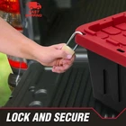 Hyper Tough 27-Gallon Heavy-Duty Plastic Storage Bin with Snap-Fit Lid – Black Base, Red Lid Product Description: Tackle clutter with confidence using the Hyper Tough 27-Gallon Plastic Storage Container , designed for both indoor and outdoor organization. This large-capacity storage tote features a durable black base and a vibrant red snap-on lid for secure closure and a pop of color. Crafted from high-quality, recycled polypropylene , this heavy-duty storage bin is resistant to rust, dents, stains, and peeling , making it a reliable solution for daily use. Whether you’re organizing seasonal gear, tools, pet supplies, toys, or garage clutter, this storage box is built to last. The secure 2-point snap-fit lid keeps contents contained, while the stackable lid design ensures stability when multiple units are used. With six built-in tie-down holes , the lid can also be locked with zip ties or padlocks, transforming the bin into a secure outdoor storage solution. Key Features: 27-Gallon Capacity: Ideal for large and bulky items like holiday décor, sporting gear, gardening tools, or kids' toys Durable Plastic Construction: Rust-proof, dent-resistant, stain-resistant, and built for long-term use Snap-On Lid: Secure 2-point closure prevents spills and keeps contents protected Lockable Design: 6 tie-down holes compatible with zip-ties or padlocks for added security Stackable Storage: Specially molded lid allows stable stacking, saving valuable space Indoor & Outdoor Use: Great for basement, garage, attic, closet, patio, or shed Eco-Friendly: Made from recycled materials and easy to clean Reusable & Versatile: Use for tools, clothing, shoes, camping gear, and more Product Specifications: Exterior Dimensions: 30.6" W x 20.6" D x 14.3" H (77.7 cm x 52.3 cm x 36.3 cm) Weight: 6.6 lbs Color: Black base with red lid Material: Recycled polypropylene plastic Quantity: 1 bin (black base) + 1 snap-on lid (red) Available Sizes: 5, 12, 17, 27, 40, and 50 Gallons Perfect for: Garage & workshop storage Holiday decoration storage Camping gear organization Kids’ toy storage Closet decluttering Outdoor/patio secured storage