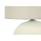 This stylish and fashionable 18"h table lamp with a textured, cream ceramic globe-shaped base and matching ivory fabric drum shade, finished with a round silver finial on top, is the perfect accent to brighten any room. Featuring a 3-way switch holding a single bulb (not included) with a maximum output of 100W/120V, allows you to customize the lighting ambiance in your living room, home office, or bedroom. With a contemporary appeal, place this versatile decorative lamp on a side or end table, on a console, or on your nightstand to create a warm and inviting atmosphere. Made with durable quality materials ensuring longevity, this lamp includes a 2 year limited against any manufacturer s defects for a worry-free purchase. Brighten up your living room, home office, or bedroom with this chic globe shaped 18"h table lamp, with a textured cream ceramic base and topped with an ivory fabric drum shade for a contemporary appeal. The easy to use 3-way rotary switch holds a single bulb (not included) with a maximum output of 100W/120V to adjust the lighting ambiance and instantly illuminate or dim a room. Attached with a 6ft transparent cord, place this versatile accent lamp on any end or side table, console, nightstand or bedside table for a practical lighting source. Minor assembly is required with illustrated instructions included; made with durable materials and backed with 2-year limited against manufacturer s defects for your satisfaction. Assembled dimensions: 14 in. L x 14 in. W x 18.25 in. H; base: 10 in. L x 10 in. W x 8 in. H; shade: 14 in. L x 14 in. H x 9 in. H