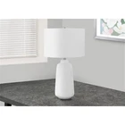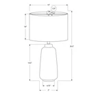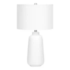This beautiful modern style 26"h table lamp with a subtly textured cream ceramic base and ivory linen drum shade, topped with a round silver finial is the perfect way to add a contemporary touch in your living room, office or bedroom. The convenient 3-way switch holds a single bulb (not included) with a maximum voltage of 100W/120V, allowing you to adjust the lighting to suit the ambiance in a room. With a 5ft clear cord attached to the base, this versatile accent lamp can be placed on an end or side table, or nightstand as an additional lighting option. Made with high quality materials, this decorative lamp includes a 2 year limited against manufacturer's defects for your satisfaction. Illuminate a living room, office or bedroom with this trendsetting, modern 26"h table lamp in a classic tapered cream ceramic base with a subtle texture, topped with a chic ivory linen drum shade and silver finial. The easy 3-way rotary switch holds a single bulb (not included) with a maximum outage of 100W/120V allowing you to adjust the lighting ambiance to instantly brighten or dim a space. Attached with a 5ft transparent cord, place this versatile accent lamp on any end or side table, a nightstand or bedside table for a fashionable lighting source. Minor assembly is required with illustrated instructions included; made with durable materials, this lamp is backed with 2-year limited against manufacturer s defects for your satisfaction. Assembled dimensions: 15 in. L x 15 in. W x 25.5 in. H; base: 7 in. L x 7 in. W x 14.5 in. H; shade: 15 in. L x 15 in. W x 10 in. H