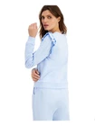 This sweatshirt is so cute and comfy! The light blue color is perfect for spring, and the ruffled embellishments add a stylish touch. Even though it was a display item, it looks brand new and fits great. The cotton blend is soft and cozy, making it ideal for casual outings. Love the relaxed fit—definitely worth it!