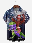 Indepndence Day Flag Dinosaur Chest Pocket Short Sleeve Shirt Hawaiian Shirt