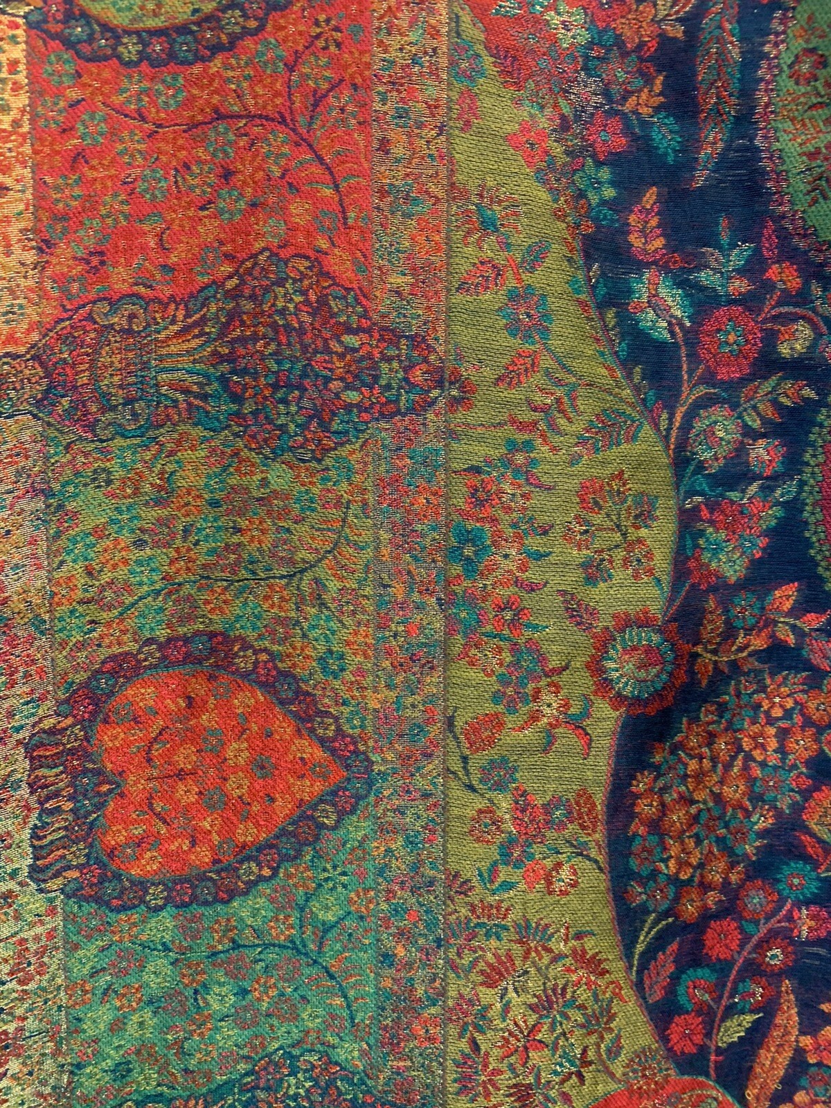 Brand new cashmere scarf(except embroidered line) Width: 44 inch, length 79 inch. Made in India Number #0491