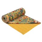 Add a touch of luxury to your bedroom with this beautiful Indian handmade vintage Kantha quilt. The quilt is made of 100% cotton and features a stunning Frida pattern in yellow. It is perfect for all seasons and comes in a queen size rectangular shape. The quilt is machine washable and quilted for extra comfort. It is also personalized and makes a great gift for teens, adults, unisex baby & toddler, and kids. The coverlet is designed with an eye-catching style and theme of luxury. This Indian-made coverlet will be a great addition to your bedding collection. This vintage Kantha quilt is a perfect addition to your home decor. It is machine washable and easy to maintain. The quilt is suitable for teens, adults, unisex baby & toddler, and kids. This bedspread is a great way to add a cozy and comfortable touch to your bedroom. Blanket Indian Twin Handmade Bedspread Kantha Work Bohemian Bed Decor Throw Blanket 60X90 inch => Frida Kantha Quilt => Material: 100% Cotton => Size:- Twin 60 x 90" Approx. => Size:- Queen 90 x 108" Approx. Note:-As this is Applique Hand Floral Kantha, There will be variation in patches Every Piece Comes Different Base Color will Be same. You Will Received Little Bit Differ As Shown In Picture. Note - loose threads to be expected. Note - The entire Two Layer of Silk and Cotton quilt is hand embroidered with end number of straight stitches to create a unique product, one of a kind, that it’s a perfect GIFT too. , All these make them a Patchwork Quilt. Note - There is no batting inside the two layers. Cotton fabric King Size Kantha Stitch Quilt , Blanket / Bedspread. , * Frida pattern on the front side. * Backing with solid pattern. * Colored threads are used to develop the Kantha pattern. NOTE: Once You Bought Item From Our Store You Will 100%Satisfied. And You Will Get As We Describe !