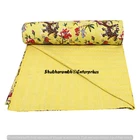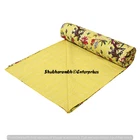 Indian Yellow Throw Blanket Indian Bird Print Kantha Quilt Cotton Boho Bedspread