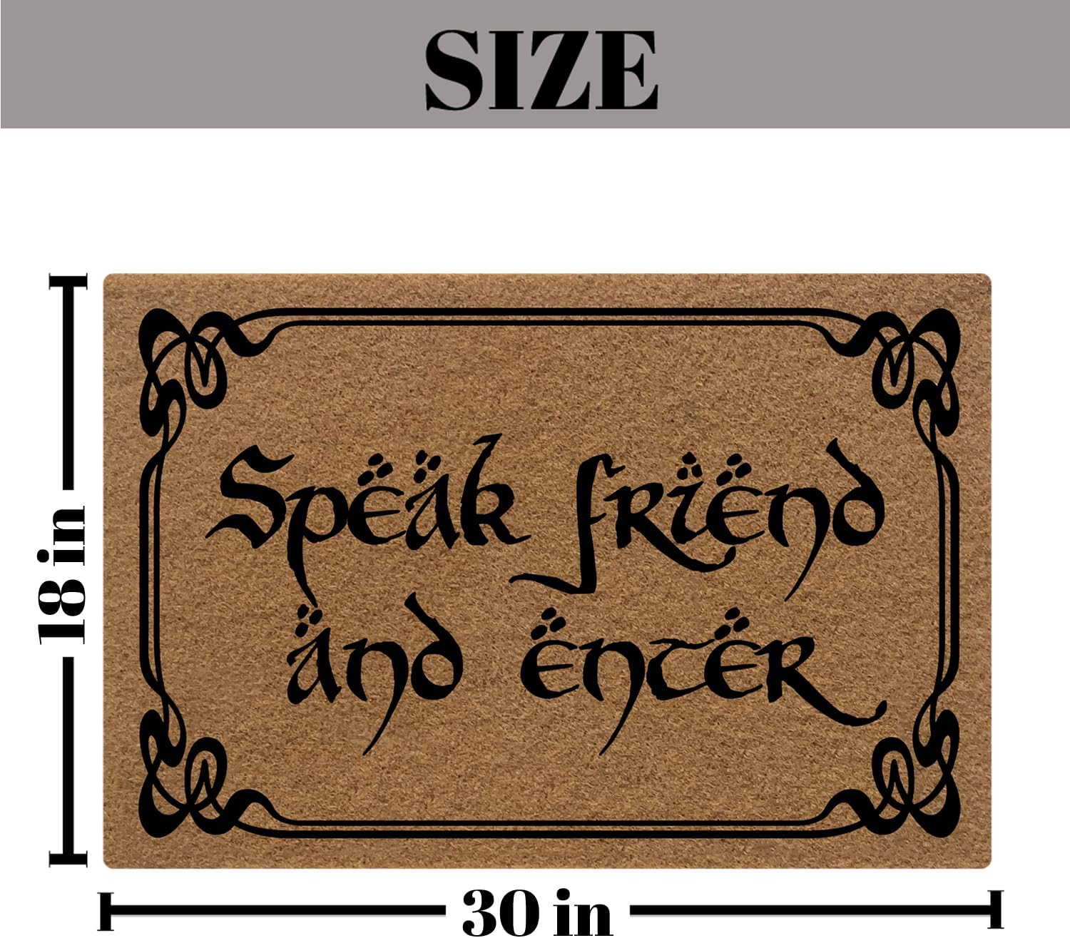 ★【Low Profile & Versatile】★ The low-profile design and reinforced edges ensure a stable surface, allowing doors to open smoothly without sticking or curling. This feature makes it an ideal choice for high-traffic areas such as entryways, kitchens, and offices. ★【Soft Non-slip & Durable】★ Crafted with a durable non-slip rubber backing, this doormat provides a secure grip on various floor surfaces, minimizing the risk of slips and falls. It is an essential addition to any home, prioritizing the safety of your family and guests. ★【Easy To Clean】★ Designed for convenience, this doormat is weather-resistant and quick-drying. A simple shake or occasional sweep is all it takes to keep it looking fresh and clean, making maintenance effortless. ★【Multiple Use】★ This versatile indoor doormat not only serves a practical purpose but also enhances your home décor. It can be utilized in various settings including entrances, bedrooms, kitchens, and offices, adapting seamlessly to your style. ★【Standard Size For Your Entryway】★ Measuring 30"x18" and with a thickness of 0.4", this doormat fits all standard door sizes, ensuring that it won’t obstruct door movement while providing a welcoming touch to your space. Add a touch of charm and functionality to your home with the Indoor Entrance Doormat featuring the phrase "Speak Friend." This thoughtfully designed doormat not only welcomes guests but also serves as a practical solution for keeping dirt and debris at bay. Its low-profile design ensures that it fits beneath doors without hindrance, making it perfect for busy households. Constructed with a soft, non-slip rubber backing, this doormat is built to last while prioritizing safety. The easy-to-clean feature ensures that maintaining its appearance is hassle-free, allowing you to focus on enjoying your space. Whether placed in an entryway, kitchen, or office, this doormat adds a unique flair to your décor while providing essential function.
