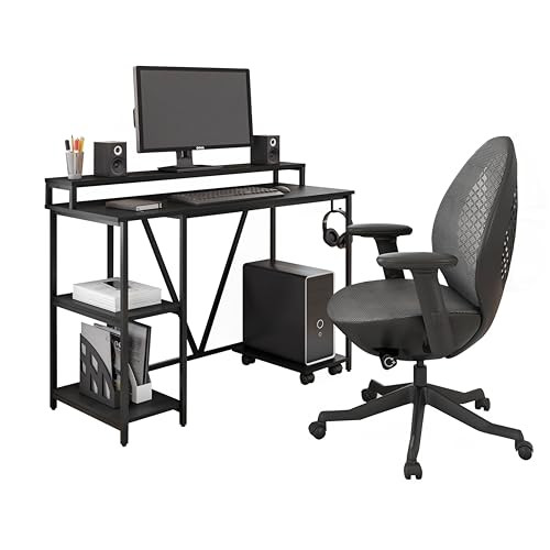 Return Policy Fast Delivery Trusted seller Computer Desk - Industrial Writing Desk with Storage Shelves, Monitor Stand, & Accessory Holder - Home Office Laptop Computer Table with CPU Caddy & 2-Tier Small Bookshelf Space,Black Product Description Rich engineered wood tabletop with a steel frame adds an industrial vibe to your workspace Powder-coated steel frame for durability and stability A two-tier shelf at the tabletop lets you raise your screen for improved visibility and reduced neck ache Two open shelves on the side for added storage. Mobile CPU Caddy with dual wheels , plus a side holder hook. Integrated Accessory Holder Weight limit 88 lbs Shipping Returns Payment Shipping Shipping is FREE to all addresses other than APO/PO boxes in the lower 48 states. All our stock ships from US-based warehouses. Shipped via USPS or UPS (depending on location and package weight) Unless stated otherwise, all orders will ship within 24-72 hours of your payment being processed. Check our feedback to see the great reviews of FAST shipping we offer. Returns Seller does not accept returns Payment We currently accept payment via eBay managed payments only. Once payment is cleared, we will dispatch your shipment within 1-3 business days. Please refer to the "Shipping" tab for more information regarding shipping speed to your destination.