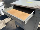 WE CAN SHIP THIS ITEM! PLEASE MESSAGE FOR A QUOTE PRIOR TO PURCHASING. SHIPPING IS NOT INCLUDED IN THE PURCHASE OF THIS ITEM. Industrial Standing Desk Workstation Shop Desk Cabinet Vintage Garage Commercial Overall dimensions: 34.5" Wide x 29" Deep x 43" Tall Bottom of Desktop slope: 43" Surface rust inside drawer Cabinet door handle could use some adjustment, but is functioning and secures door shut No keys included Great vintage style standing desk in decent used condition. Make sure to check out the video! Local pickup in Burlington NC or ship by LTL Freight Track Page Views With Auctiva's Counter