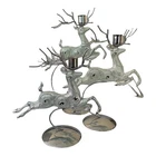 Set of 3 Leaping Reindeer Candleholders. Silver Glitter, with a Swirling design . Each on is on a stand. The candle is held on the antlers. New, with sticker on bottom of one deer. Retails for $50.00 Smoke Free Home. We provide FAST Shipping, same day if purchased by 3:00 PM EST. International Sales Ship through International Shipping Program. Free returns. New items must be unopened, unused. Thank you for considering our listing, we value your business.