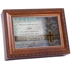 This beautifully trimmed Music Box / Jewelry Box makes the perfect gift. The Sankyo brand musical movement is enclosed in glass for an added touch of luxury. Use the photo opening to add your own special touch of personalization. Beautiful Woodgrain Finish Plays Amazing Grace Easily Personalize With Your Own Photos And Messages Makes A Perfect Gift Or Family Keepsake.