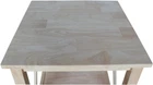 International Concepts Hampton End Table, Unfinished Product Details Brand: IC INTERNATIONAL CONCEPTS Product Dimensions: 22"D x 22"W x 25"H Maximum Weight Recommendation: 200 Pounds Color: Unfinished Product Care Instructions: Wipe with Dry Cloth Item WeightFrame Material: 31 PoundsWood Top Material TypeShape: Rubber WoodSquare Made from solid parawood One Shelf Decorative X design Assembly required Unfinished This practical, beautiful table from International Concepts is the perfect accent piece to your family room, living room, bedroom or entryway. This solid wood table is part of a high-quality collection of wood furniture that will easily complement any décor. Parawood – a hardwood known for its durable, strong, and environmentally friendly nature – is used to craft these traditional, unique tables. Whether you are creating a casual or elegant look and feel in your home, the occasional table from International Concepts will be a perfect match.