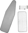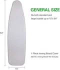 Untitled Page Features PREMIUM AND ECO-FRIENDLY MATERIAL: This cover is made of 3 layers- silicone coating cotton surface, thicker foam padding and 100% natural breathable cotton. Comes with protective mesh cloth to avoid shining marks or scorches. All materials are eco-friendly . Compared with covers that lack a focus-proof silicone coating, this cover is more durable, and makes the boring ironing work easy and enjoyable ELASTICIZED EDGE AND EXTRA STITCHING: Good Elasticized edge with non-slip nose pocket design keeps ironing board covers securely in place. High quality stitching technology, no need to worry about the quality of the opening GET WRINKLE-FREE CLOTHES RIGHT NOW: The heat reflection of silicone coating distributes heat and steam evenly, shortens the ironing time greatly, to help get the wrinkle-free clothes soon. You'll find that Sunkloof ironing board covers dedicates to eliminating annoying creases to protect all your gorgeous clothes GENERAL SIZE AND EASY TO INSTALL: Durable and stretchable material makes board cover fit standard size, and even 15" x 54" ironing boards. Cozy nose pocket helps installing easier, and fixing on the boards better. Fasteners (optional) and the elasticized design make the surface of cover smooth Specifications Color: Silver Material: 100% cotton with scorch and stain resistant finish Dimension: 55'' x 16'' What's in the Package 1 × Ironing Board Cover 1 x Protective Mesh Cloth 4 x Fasteners