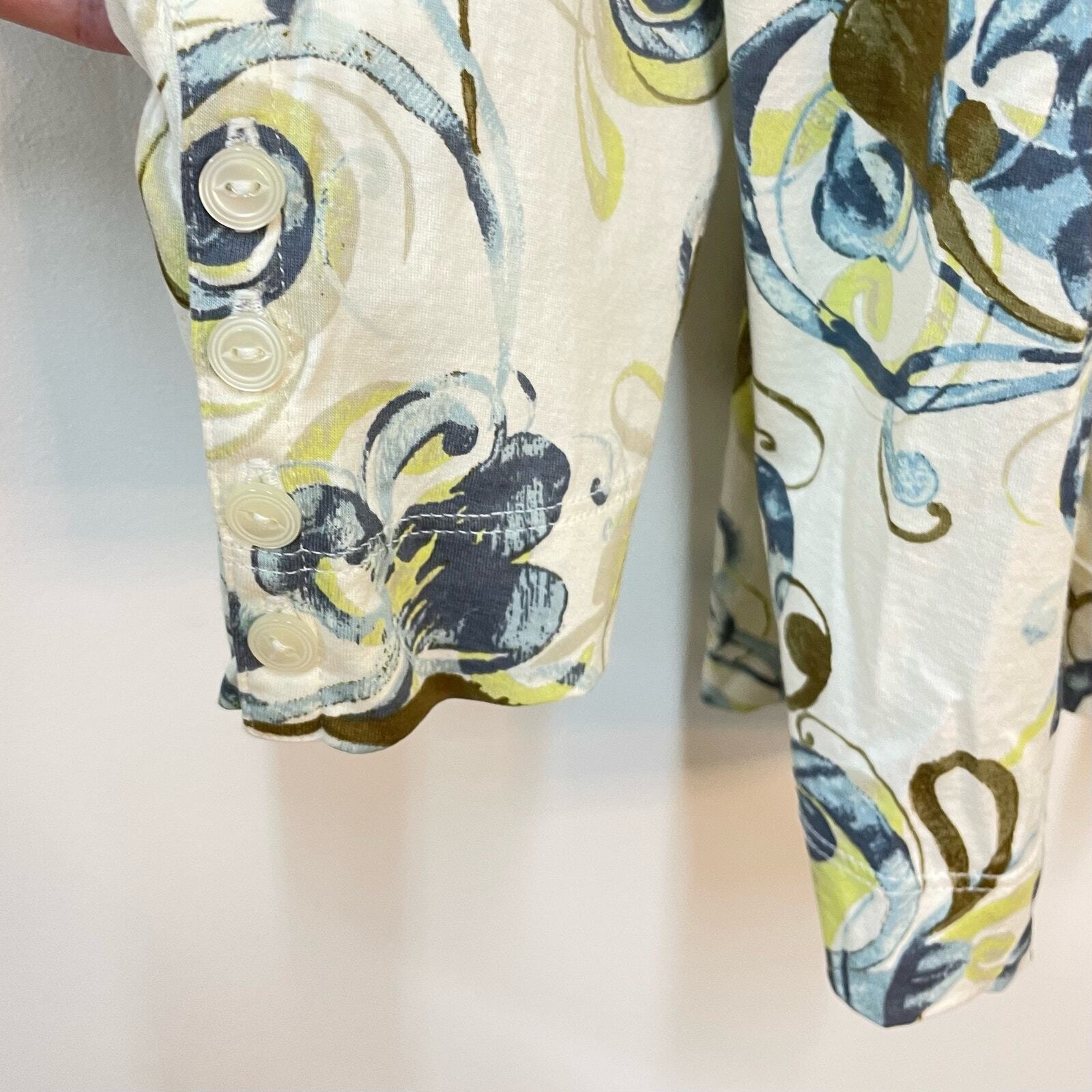 J. Jill Cream Abstract Print V-Neck Button Front Pima Cotton Cardigan Cream with multicolor abstract swirl pattern Button cuffs 100% Pima cotton V-neck Button down Size small *Approximate measurements: Pit to pit- 19.5" Length- 24" *Excellent preowned condition