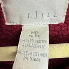 Brand: J. Jill Size: Medium petite Measurements: Please see photos for approximate measurements. Condition: In good pre-loved condition with some normal wear to the fleece material. Color: red Material: poly, acrylic Features: Button front with metal branded button closure Long sleeves with button closure Pockets Stand up collar Tags: fall, winter, cold weather, lodge, cozy, hot cocoa girlie, cabin, cabincore Pre-owned clothing items are properly cleaned, washed, and/or steamed at high heat before listing.