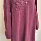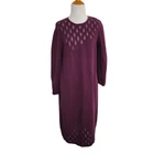 J. McLaughlin knit sweater dress Size XL extra large 54% cotton/44% modal Hand wash Pullover styling Round neck 3/4 sleeves Sangria purple Crochet detail Stretchy No pockets Unlined Approx. lay-flat measurements: Length: ~42.5" Pit to pit: ~20.5" Sleeves: ~19.5" Good pre-owned condition. There is some wash wear, esp. in underarm area, but no holes/stains
