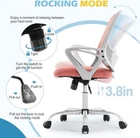 JHK Ergonomic Office Home Desk Mesh Fixed Armrest, Executive Computer Chair with Soft Foam Seat Cushion and Lumbar Support, Pink Product Details Color: Pink Brand: JHK MPN: MK006PKY2 UPC: 705690864047 EAN: 0705690864047 Brand: JHK Color: Pink Product Dimensions: 22.64"D x 23.62"W x 35.43"H Size: 22.64D x 23.62W x 35.43H in Back Style: Solid Back Brand: JHK Color: Pink Product Dimensions: 22.64"D x 23.62"W x 35.43"H Size: 22.64D x 23.62W x 35.43H in Back Style: Solid Back Special Feature: Ergonomic, Rolling, Cushion Availability Product Care Instructions: Wipe Clean Unit Count: 1.0 Count Recommended Uses For Product: Office Maximum Weight Recommendation: 250 Pounds Style: Modern Pattern: Solid Finish Type: Painted Room Type: Office Age Range (Description): Adult Included Components: 1 Shape: Rectangular Model Name: Ergonomic Office Chair Surface Recommendation: Hard Floor Furniture base movement: Swivel Fill Material: Foam Tilting: Yes Is Electric: No UPC: 705690864047 Manufacturer: JHK Item Weight: 15 pounds Country of Origin: China Item model number: MK006PKY2 Date First Available: July 29, 2022 Ergonomic Office Chair - This mesh chair is designed to give you proper back and body support, you can easily adjust the seat height from 0~3.93 inches to ensure you sit comfortably in daily use, reduce back stress and pain, and give you the best support. Maximum weight capacity of 250 lbsAssembly Required Breathable Mesh Chair - Our breathable mesh material provides excellent airflow to avoid sweating and sticking and keep air flowing, and the mesh office chair's anti-abrasion and deformation features provide better lumbar support performance, making the high-back computer suitable for sitting for 10 hours. Tilt and lock function - This office chair upgrades the luxury function to bring a more comfortable experience. With the lockable chair angle mechanism, our office chair allows you to adjust between 90 and 120, which is more adaptable to your various angle needs and gives you the most comfortable sitting experience. Stable Armrests - Stylish and beautiful armrests always give you more support while working or resting on the office chair, made of comfortable material with wide support surface to give your arms good support.