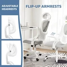 【Ergonomic Lumbar Support】The ergonomically designed backrest of our ergonomic office chair has prominent lumbar support to fit the natural curvature of the spine. The Computer Desk Chair with mid-back brings quality and comfort to any office. 【Comfortable Seat】Ergonomic features an all-elastic premium mesh back and a high-density sponge seat making the mesh office chair a good choice for all-day comfortable office seating. The unique mesh design is skin-friendly and breathable, which keeps you cool all day. 【Space-saving】Flip-up armrests are available and won't be in your way when not in use. The Armrests of the computer chair provide comfortable support for your arms and can be flipped up to save space effectively while not in use. It is perfect for the office, bedroom, study room, living room, or gaming room. 【Adjustable Headrest】The Unique Headrest easily adjusts to your requirements. More support for the head and neck can be provided by adjusting the height and angle of the headrest, which can make you feel comfortable and help you avoid soreness from your neck and back! 【Multifunctional Mechanism】The seat height of this 360° Rotating chair could be easily adjusted by the pneumatic adjustment lever, and the adjustment range is 18.5-22.2 inches. Besides, the rocking mode from 107° to 144° helps you to relax from hard work. 【Smooth Movement & Stability】Our comfy office desk chair comes with smooth and multi-direction casters, which allow you to move the chair around effortlessly. They can run smoothly on tile, wooden floors, carpets, and other floorings. The large 5-star base increases stability even at the full height range. The maximum weight capacity is 250 lbs. 【Easy Assembly】The home office chair comes with installation instructions and all necessary hardware& tools. We also offer a video to help you, allowing the office chair installation to be completed within 10-15 minutes