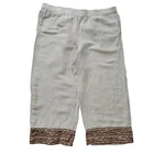 J.Jill Size L Linen Blend Embroidered Hem Wide Leg Pants Pull On Off White Brown Off-white / cream color pull on casual pants from J.Jill Decorative brown leaf embroidery detail on ankle hems Elastic Waist Pockets Wide Leg Cropped -Materials: 57% Linen, 43% Rayon -Excellent, pre-owned condition. No visible stains, flaws or tears. No to minimal signs of previous wear. Measurements included in photos - please inquire if more are needed. All offers considered - make one today! Approximate Measurements: Waist: 32" Rise: 10" Inseam: 22"