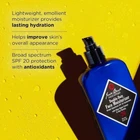 Description Lightweight, emollient moisturizer provides lasting hydration and helps improve the skin’s overall appearance. Broad-spectrum SPF 20 with antioxidants helps protect the skin from the damaging effects of environmental stress–including UV light, blue light, and pollution. Ingredients ACTIVE INGREDIENTS Avobenzone: UVA Absorber. Octinoxate: UVB Absorber. INACTIVE INGREDIENTS Blue Algae Extract: A rich source of Vitamin E; it soothes and helps keep skin supple. Sea Parsley: Contains a combination of naturally occurring Vitamins (A & C) and minerals, which work together to soothe and help improve skin’s appearance. Vitamins A & E: Powerful antioxidants that help protect skin from free-radical damage. Phospholipids: Bind moisture to the skin and help support the natural skin barrier. How & When to Use Use after cleansing and shaving. Apply liberally to face and neck 15 minutes before sun exposure.