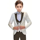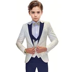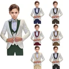 Jacquard Satin Boys Tuxedo Suit Slim Fit 3 Piece Suit Wedding Ring Bearer Outfit