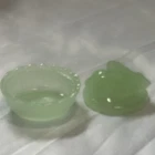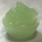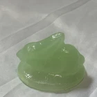 Cute mini green glass bunny rabbit trinket dishes bunny on a nest! No chips or cracks! Great for a little girl or collector!