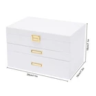 Jewelry Case Jewelry Box Box Gifts Box with 2 Drawers White for Storage Earrings Description Is your fine jewelry still piled up on the vanity cabinet with dust? Are you still worried that you can't find the jewelry you want when you go out in a hurry? This beautiful and practical jewelry box can solve all your troubles. The three-layer storage design allows you to store many different kinds and sizes of jewelry, and helps your jewelry and tabletop keep clean and beautiful! It will be a unique organizer for all your beautiful jewelry! Key Features Rational Layout: Depending on the size of your everyday jewelry and its characteristics, this jewelry box is designed with compartments of different sizes, as well as special necklace hangers, ring rolls, and watch compartments with removable pillows for more secure storage, display, and selection of your jewelry. Full Pull-out Drawer: The full pull-out drawer design is convenient for displaying and accessing all jewelry, and you can also rearrange each drawer according to your usage habits. Elegant Appearance : The classic white jewelry box with lustrous metal handles showcases its nobility, elegance, and style. It complements your noble temperament while adding elegance to your dressing table. Sturdy and Durable : Our jewelry box is made of high-quality density board with a painted exterior that is waterproof, wear-resistant, impact-resistant, and long-lasting, as well as very sturdy to provide good support and stability. Large Capacity : This large size (11*7.5*7.1in) jewelry box is designed with three layers to give you plenty of storage space. With this large-capacity jewelry organizer, your various jewelry will have a warm and spacious home. Great Organizer: This jewelry box will keep all your jewelry well organized, neatly displayed, and safely stored. The unique drawer design and lid provide excellent water and dust resistance for jewelry. Ideal Gift: This jewelry box has a unique design with a beautiful appearance and a large capacity with practical features. It is an ideal gift for Valentine's Day, Mother's Day, Thanksgiving, Christmas, birthdays, and weddings. Ready to Use : This 3-layer jewelry box can be used directly without extra installation, saving your time and energy. Easy to Clean : It has a painted finish to make it easy to clean. You can easily remove dust and stains from it with just a damp rag. Customer Service: We aim to provide quality products and services. If you have any problems, please feel free to contact us. We will reply and solve the problem for you as soon as possible. Details Plush Lining: The jewelry box is designed with a plush lining that not only gives you a comfortable touch but also protects your jewelry from scratches and crushing so that your precious jewelry will be well cared for until the next time you use it. Anti-slip Pads: It has non-slip pads on the bottom for more stable placement. It also prevents the table from being scratched. Necklace Hook: The cover is specially designed with 5 hooks for the necklace, which can better display the necklace and prevent it from knotting. A pocket is also designed below the hook to fix the necklace or store other items. Premium Hardware: The gold hardware of this jewelry box is electroplated for color fixation, which makes it glossy and textured, and also prevents corrosion and rusting. Attractive Design Handle : The hidden handle design is both beautiful and practical. When you need to use it, you just need to press the right end of the pull with your thumb, and then the left end will be raised for successful pulling out of the drawer, which is an innovative and stylish design. Application It is suitable for organizing various jewelry including sunglasses, watches, hairpins, earrings, rings, bracelets, watches and necklaces. Specifications Material: Density Board, Hardware Hardware Process: Electroplated Process: Painted Lining Material: Plush Color: White Style: Modern Number of Layers: 3 Shape: Rectangular Mounting Type: Free-standing Watch Compartment Size: 5*8.5cm/2*3.3in Second Layer Smaller Compartment Size: 4.3*4.8cm/1.7*1.9in Second Layer Larger Compartment Size: 3.5*15.5cm/1.4*6.1in Packing Size: 34*25*25cm/13.38*9.84*9.84in Product Size: 28*19*18cm/11*7.5*7.1in Gross Weight: 3.2kg/7.05lbs Net Weight: 2.8kg/6.17lbs Package Included 1* Jewelry Box Notes Please allow the slight color difference caused by the shooting light and 1-3cm error due to manual measurement, and make sure you do not mind before you order. Payment Delivery details Terms of sales About us Contact us Payment We accept ebay payment 。 Fees such as import duties, taxes are not included in the item price or shipping costs. These charges are the buyer's responsibility. Delivery details Shipping: 2-9 working days to: USA Terms of sales We maintain high standards of excellence and strive for hundred percent customer satisfaction. Feedback is very important to us. We hope that you contact us immediately before you give neutral or negative feedback, so that we can address your concerns. It is impossible to address issues if we do not know about them! About us Your satis faction is our ultimate goal. We work hard to earn your trust and future business. Our certified technicians have tested each item before shipping. The unit comes with 1 year limited warranty on all manufacturing defects. a) If you receive a defective item, you may return it or ask for a discount. Please contact us within 14 days after you receive the package. b) What you returned must be intact and in its original packaging as re? u. Customer is responsible for shipping costs of the returned item. c) We will cover the cost of shipping back t with the shipping rate indicated in the registration page. We will send you a new unit or refund the full payment you paid. Thank you. Contact us Business Hour Business Hour: Monday To Friday: 8:30 AM to 5:00 PM (Beijing China time) Due to time zones, our reply to your questions may