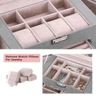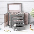 LARGE CAPACITY JEWELRY BOX:5-tier and 2-wings can organize all your jewelry. The top layer with lock and mirror to store valuable jewellery. Contains 4 pillows, 4 earring grids and 7 ring cushions, 12 equal-sized squares, one large sunglasses grid. The middle 3 layers can be interchanged SMALL FOOTPRINT: 10.67" L x 11.30" H x 6.22 W, It can be placed on your dressing table or vanity, it will not take up a ton of space MULTI-FUNCTIONAL JEWELRY ORGANIZER:The jewelry box It can be put a couple watches, earrings, rings, necklaces, hairpins,brooches, bracelets, and some sunglasses distributed into all the drawers. Avoid jewelry tangle and loss and tarnish in the air, keep your desktop neat and clean STURDY and ELEGANT for WOMEN:The jewelry box frame is made of medium density fiberboard, the structure is stable and will not dent or fall apart. The exterior is Faux Leather, which can be cleaned with a damp cloth without cracks or peeling. The interior soft velvet lining can protect your jewelry from scratches.Elegant and suitable for women of all ages JEWELRY ORGANIZER BOX with LOCK and MIRROR: Intimate and convenient. You can save your precious jewelry box in the lockable grid to prevent loss and child trouble. The mirror on the top layer is convenient for you to choose the right jewelry to match your makeup, and find the objects you want more quickly GIFTABLE-BEAUTIFULLY CRAFTED:The jewelry box exquisite workmanship and exquisite hardware. For GF, MOM and daughter, it is a good choice for Valentine's Day, Mother's Day, birthday or Christmas