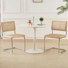 【Mid-Century Modern Design】Blending Minimalism with a touch of retro luxury, with sleek lines and simple design, We have 8 different materials and colors of seat for different styles of table, the rattan chair must be a perfect piece to your dream home. 【Ergonomic Design】Featuring an ergonomic hand-woven rattan back and padded seat with high-density foam cushioning,our cane chair ensure comfortable and breathable seating experience; The armless dining chair suitable for individuals of different body types, will not make people feel constrained; 【Sturdy and Durable】The robust metal frame enhances the durability of the kitchen table chairs, with a maximum weight-bearing capacity of up to 200 lbs.The floor is also protected from scratching thanks to the rubber feet on dining chair legs. 【Easy to Clean and Storage】The chairs can be stacked together for easy storage; installation is very simple, with instructions and tools!the backrest is not easy to dirty, high-quality rattan fabric seat is sitting for a long time without collapsing,resistant to dirty good wipe. 【Multipurpose&Excellent Customer Service】 Mid-century modern style, Sturdy chairs can be used in dining room, guest room, living room, kitchen, lounge, extra room and so on.We have worry-free quality assurance&friendly customer support, e-mail us when you need help.