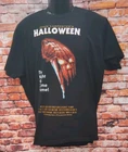 Show off your love for the iconic horror movie, John Carpenter's HALLOWEEN, with this limited edition movie poster t-shirt. Featuring Michael Myers in a menacing presence, this shirt is perfect for any fan of the genre. Made from comfortable, preshrunk cotton, it is easy to care for and packable for any season. The black t-shirt has a regular fit and short sleeves, with a crew neckline that adds a touch of classic style. The shirt is adorned with the movie's logo and a bold graphic print that captures the essence of the film. Perfect for any occasion, this t-shirt is a must-have for any horror movie enthusiast. If you like this item, but don't like the price, please feel free to contact me anytime/and or make an offer. Thank You