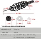 For John Deere HPX Gator XUV620i XUV850D Front Coil-Over Shocks With Bushings Compatible Front Left & Right Shock Absorber Set Fits For John Deere Gator UTV, Replaces AM137957 AM135372, Suitable For HPX, HPX 615E, 815E, XUV620I, XUV850D, Pre-assembled With Bushings & Washers Comprehensive Compatibility: This shock absorber set is widely compatible with John Deere Gator HPX, HPX 615E, 815E from 2004-2020, and Gator XUV620I 4x4 and Gator XUV 850D 4x4 Diesel from 2007-2010.Replaces OEM# AM137957 AM135372.It ensures you can find the precise replacement part. Exceptional Durability and High-Quality Manufacturing: Our springs are heat-treated and powder-coated to ensure durability and corrosion resistance in harsh conditions. The steel rod is micro-polished with double chrome plating to increase corrosion resistance and extend lifespan. Superior Driving Experience and Easy Installation: We've included isolators between the spring seat and springs to reduce noise and enhance comfort. Moreover, the shock absorber set comes pre-assembled with the spring, boot, bumper kit, spring seat, isolator, and shock mount. It can be quickly installed on your vehicle without the need for special tools. Powerful Performance: We use the latest valving technology that works in stages based on the vehicle's speed to provide optimal driving control. Additionally, the Teflon bonded piston seal helps reduce friction and keep temperatures low, ensuring the stability of the valve. Package: Front Left + Right Shock Absorber Set Payment Delivery details Terms of sales Contact us Payment Orders will be ship out within 1-3 business days after payment has cleared. Delivery details Orders from Saturdays, Sundays or holidays will process on next business day and will be ship within 24 hours. Some shipments could take longer subject to your local customs authorities. We only ship to confirmed ebay addresses. Your ebay address MUST MATCH your Shipping address Terms of sales We accept 60 days return guarantee for all Items If you are unsatisfied with something you bought from us, you may send it back within 60 days of receipt, and we shall be happy to exchange or refund. Contact us If you have any question, please email contact me, we can solve all the problem. Brand for John Deere Type Front Left & Right Shock Absorber Set Material Steel Manufacturer Part Number AM137957 OE/OEM Part Number AM137957 AM135372 Fitment 1 Fits for John Deere Gator UTV Fitment 2 For HPX, HPX 615E, 815E, XUV620I, XUV850D Horsepower N/A Number in Pack 2 Power Source Diesel Compatible Brand Fits for John Deere Gator UTV Model AM137957 AM135372 Voltage N/A Compatible Model For HPX, HPX 615E, 815E, XUV620I, XUV850D MPN AM137957 Manufacturer Warranty 1 Year Vehicle Service Type UTV Auto Part Position Right, Front Left Placement on Vehicle Front, Left, Right Items Included Shock Absorber Set Machine Type UTV / SXS Features Easy to Replace