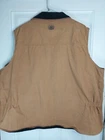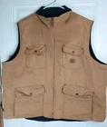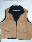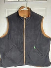 John Deere Reversible Vest Chore Jacket Mens 2X Tan Canvas Fleece Barn Hunting Mens 2XL canvas & fleece, tan & black chore vest. Great for work around the farm or hunting. Patches show some wear and has 2 small spots on front near pocket and a lighter spot on the front Please see the pictures. Approximately : 29.5" under arm to under arm and 29" from shoulder to bottom. Smoke-free pet friendly