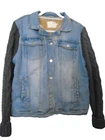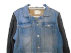 This stylish women's jacket from Judith Marsh is perfect for any occasion. The outer shell is made of 100% cotton denim and grey cable sweater sleeves, making it a colorful addition to your wardrobe. The jacket features a button closure, long sleeves, and pockets for added functionality. Faux fleece lying for warmth It is available in size Large and is suitable for winter, fall, and spring seasons. This basic jacket is perfect for travel, party/,and casual, occasions. It's machine washable and easy to care for. Judith Marsh Vintage Womens Sz L Jean Jacket Fleece Lined and Sweater Sleeves Actual Measurements lying flat Back of neck to hem 25" Bustline pit to pit 20" so approx 40" measurements from the outside 31/sav15
