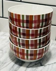 This set includes four round 6-inch soup bowls from the Royal Norfolk brand, featuring a contemporary style with multicolor lines on a brown stoneware material. The bowls are ideal for all occasions, with a theme suitable for Thanksgiving, and are part of the "Autumn" product line. Manufactured in 2024 in China, these decorative soup bowls use a pottery production technique and have a printed backstamp. Perfect for serving cereal or soup, these bowls add a touch of art pottery to your table setting.