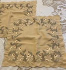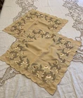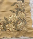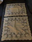 Justina Claire Appliquéd Pillow Shams (2) Sold by Quills, Ireland. Lovely golden yellow square shams with appliquéd and embroidered flowers. Shams measure approximately 18”x 18” and will hold pillows approximately 15” square. Pillow inserts not included. Shams have original tags from Quills and zipper closing. 100% polyester fabric. Preowned/never used. These are really beautiful shams and a great addition to any bedroom, living room decor. Shipping in Continental US only. Shipping USPS Ground Advantage.
