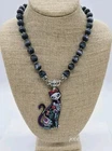 Similar to the details on infamous Sugar Skulls, the Sugar Cat Magnetic Enhancer displays the same remarkable colors and designs. The sweet and quizzical face of the cat is mesmerizing as are the brightly colored hearts, flowers and leaves on the body of the cat. Wear her to top off a Halloween costume or as a simple display of the love of cats! Kirks Folly Magnetic Enhancers Can Only Be Worn With Kirks Folly Magnetic Necklaces. Plated Silver tone. Measures approximately 1 1/2" wide x 3 1/4" long. Kirks Folly Magnetic Enhancers Can Only Be Worn With Kirks Folly Magnetic Necklaces. This magnetic enhancer necklace is created from large stormy grey Cat's Eye beads that glisten like moonlight dancing upon the water. Each faceted bead captures the essence of a magical night sky, as if concealing secrets whispered by the winds and shadows. These multi faceted beads appear to be created in the realm of the unknown, where dreams and reality converge in a cosmic dance of enchantment. Plated Silver Ox. Measures approximately 18" long with a 2" extender chain.