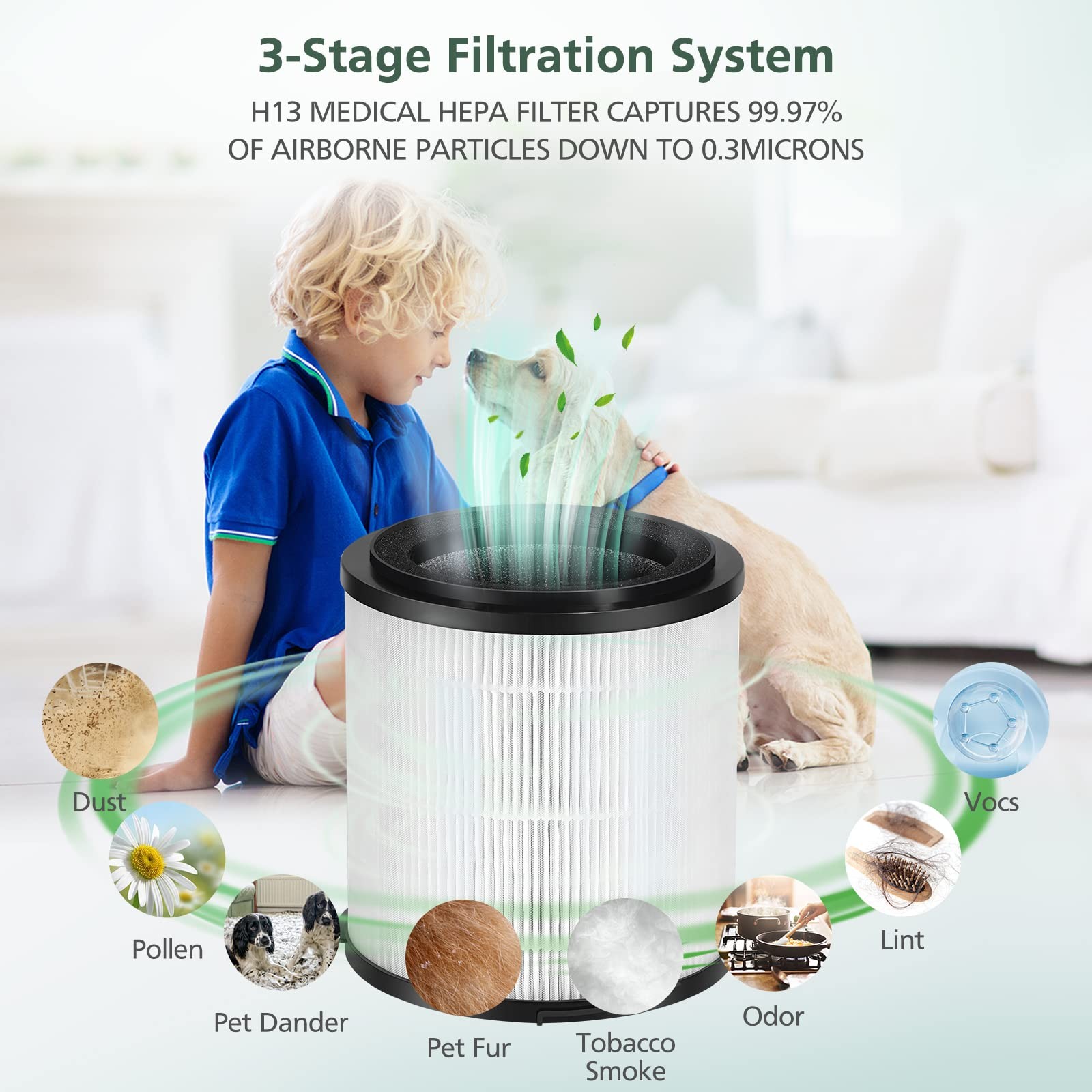 Premium H13 True HEPA replacement filter compatible with SilverOnyx 5-Speed KJ150F-C02 Air Purifier . 2-IN-1 FILTRATION: True HEPA filters can remove large and airborne particles, including dust, pet dander, common pollutants, and fabric fibers. CARBON Filter can clean, reducing gases and odors. COMPATIBLE: Premium PARTICLE and ACTIVATED CARBON filter Fits SilverOnyx KJ150F-C02 5-Speed Air Purifier by SilverOnyx TRUE HEPA FILTRATION: Our True HEPA filters for SilverOnyx KJ150F-C02 can remove large and airborne particles, including dust, pet dander, common pollutants, and fabric fibers. CARBON Filter can clean, reducing gases and odors. PREMIUM QUALITY: We deliver high-quality, durable, and long-lasting replacements, allowing the KJ150F-C02 filter to last longer, true HEPA Filter captures 99.97% of airborne dust down to 0.3 microns. EASY TO INSTALL: Turn filter counter-clockwise to remove. Remove packaging from the replacement filter and insert it into the base of the purifier. Turn filter clockwise to secure. Turn the unit upright, plugin, and turn it on. Press and hold the 'Reset Filters' indicator button until the light turns off. CUSTOMER SERVICE: Package include 2* SilverOnyx 5-Speed KJ150F-C02 Filter. In order to improve the performance of the air purifier, please replace the carbon filter every 6~8 months. If you have any problems with the filter fitting your air purifier, please contact us through our Amazon home page.