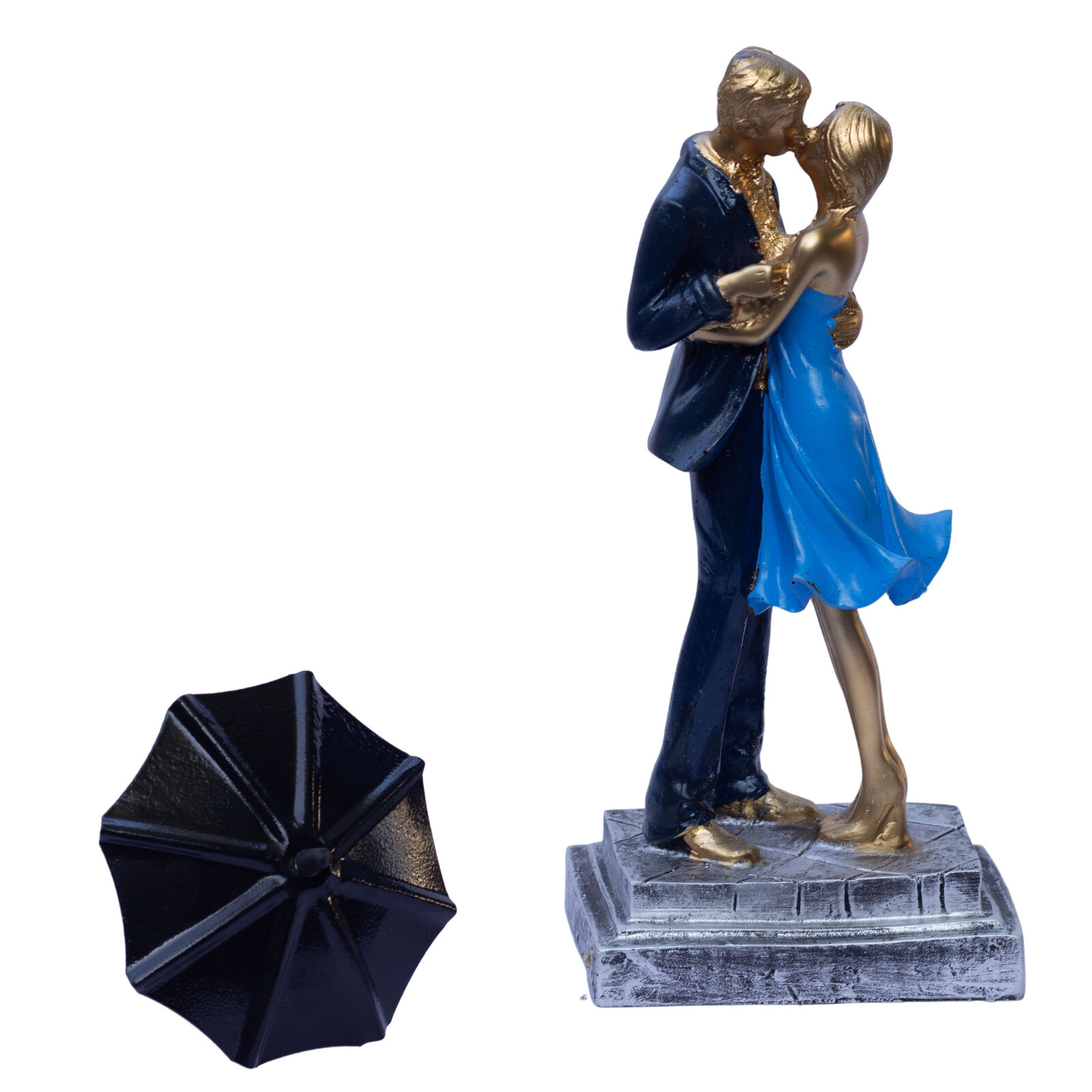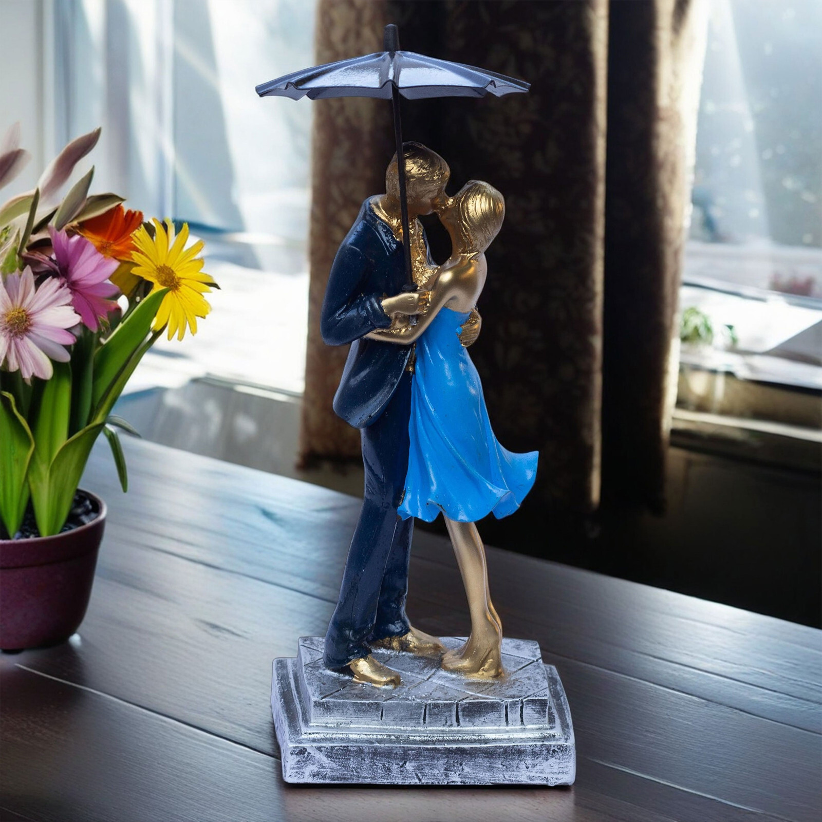 Elegant Blue Barsaat Couple Figurine – Classic Charming Romantic Love Statue for Bedroom, Living Room, Office, or Wedding Gift Add a touch of romance and elegance to your home with this blue and gold-textured couple figurine, a symbol of love and devotion. Expertly crafted from high-quality poly-resin, this stunning piece features intricate detailing, from the couple’s warm embrace to the delicate textures on their attire. The smooth, golden finish enhances its luxurious appeal, making it a timeless decorative piece that fits seamlessly into any room. Perfect as a Valentine’s Day gift, anniversary present, wedding keepsake, or home décor accent, this romantic sculpture serves as a symbol of lasting love. Place it on your bedside table, fireplace mantel, office desk, or bookshelf to create a warm and inviting atmosphere. Whether you’re looking to surprise your partner with a meaningful gift or elevate your home’s aesthetic, this couple figurine is an exquisite choice. Give the gift of love and elegance with this beautifully designed couple sculpture, a heartfelt expression of romance that will be cherished for years to come. This intricately crafted gold couple figurine captures a moment of warmth and affection, making it a beautiful addition to any home. Its elegant details and artistic expression create a timeless symbol of love, perfect for couples, anniversaries, and special occasions. Made from high-quality poly-resin, this sculpture is designed to last. The intricate detailing, golden texture, and handcrafted finish ensure it remains a beautiful decorative piece for years. No fading, no chipping—just lasting beauty! Let this couple figurine symbolize your relationship and shared memories. Whether you place it in your bedroom, entryway, or office, it serves as a beautiful keepsake that celebrates love, togetherness, and deep emotional connection.