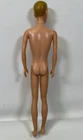 You are looking at a vintage Ken doll manufactured by Mattel in Japan in 1961. This Ken doll has blonde hair, blue eyes, and is 12 inches tall. Ken Patent Pending on right buttock. Japan on bottom of right foot. H.K. on bottom of shoes. It comes without packaging. *Toes on right foot are missing .* Includes the following clothing: · Going Bowling Red Shirt & Grey Pants · Pak Navy Blazer · Black Shoe Navy blue soft knit blazer with a red and white crest with a gold embroidered Fleur-de-lis on the upper breast pocket, half red lining and three gold beads and loop closure. Red Short Sleeve cotton shirt that has three white buttons on front. Grey zippered pants. All snaps and the zipper work. The Ken ™ by Mattel tag is sewn into the blazer, shirt and pants. Black & White Shoes. Ken doll and clothing are in good condition. From a smoke free environment.