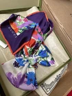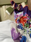 Elevate your style with this authentic Ken Scott Gucci Silk Neck Scarf. The scarf features a beautiful floral pattern with a bow hand tie style. Made from luxurious silk fabric, this vintage scarf is perfect for any season, whether it's winter, summer, fall, or spring. This multicolor scarf is perfect for women who want to add a touch of elegance to their outfit. It is recommended to dry clean only to maintain its quality. Don't miss out on the chance to own this timeless piece from Gucci. PLEASE NOTE AUTHENTIC GUCCI BOX WILL ONLY BE SHIPPED WITH ITEM IF NO DISCOUNT IS GIVEN. THIS ITEM WILL BE VIDEOTAPED UPON EXIT TO PROTECT THE SELLER FROM FALSE ACCUSATIONS OF AUTHENTICITY AND DAMAGES.