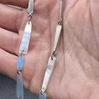 The Kendra Scott Aylin Long Necklace features a beautiful light blue shell pendant with a lobster clasp that adds a touch of elegance to any outfit. The pendant is made of high-quality acrylic material and is attached to a silver-plated metal chain that measures 40 inches in length. It can be worn long or layered. Pre- owned but in great condition.