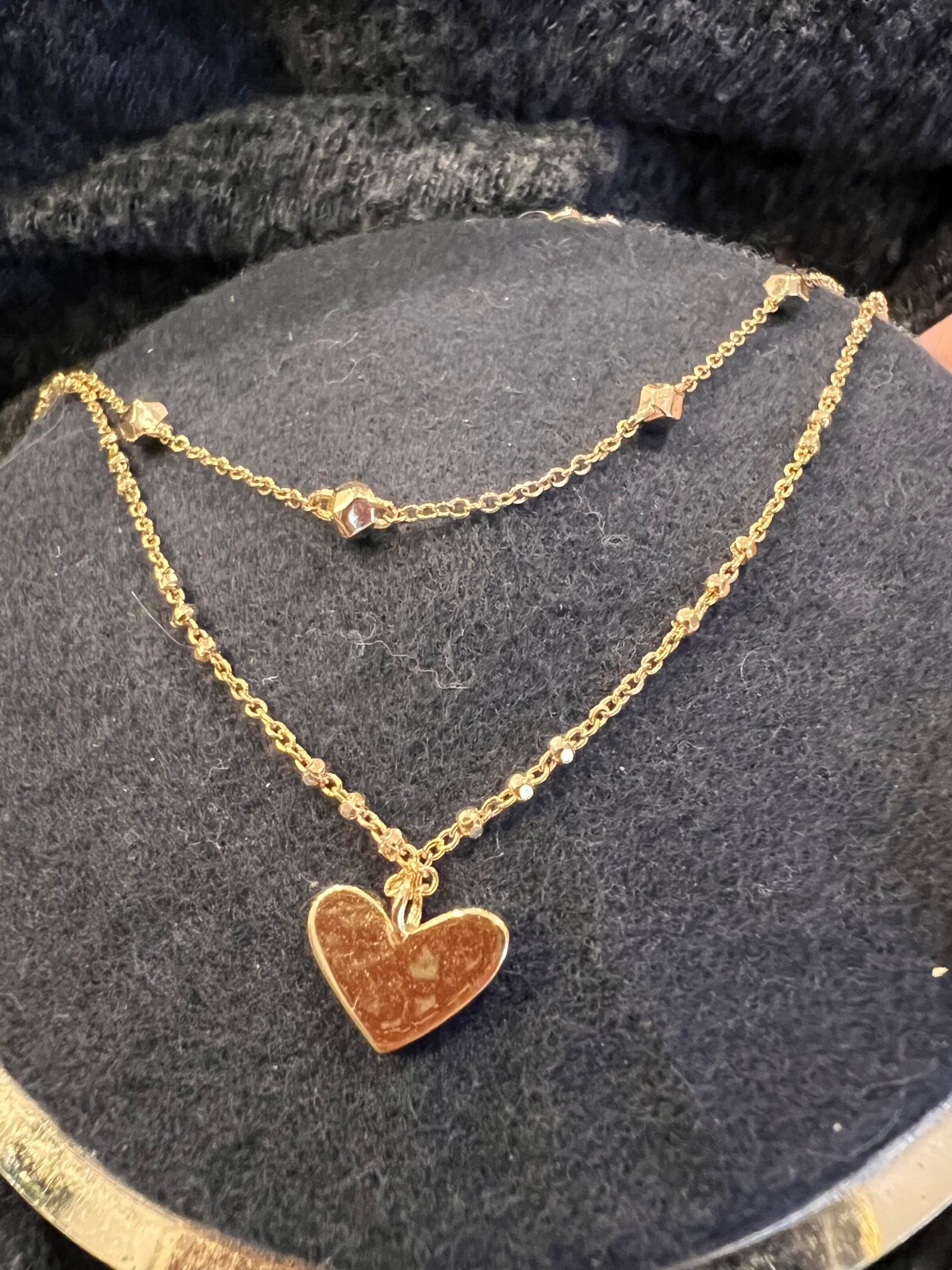 The Kendra Scott Gold Heart Necklace features a delicate chain with a heart-shaped pendant in a stunning gold color, perfect for adding a touch of love and elegance to any outfit. This necklace exudes a stylish and chic vibe, making it a versatile piece that can be worn for various occasions. The Kendra Scott brand is known for its quality jewelry, and this necklace is no exception, making it a beautiful accessory to add to your collection.
