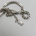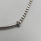 A sophisticated necklace by Kenneth Cole featuring a striking green stone encased in a silver-tone setting. The necklace's unique design and color make it an elegant statement piece for professional attire. • Silver-tone chain with box links • Green stone pendant • Secure clasp closure • Elegant design Minor tarnish on the back of the pendant. Gently Used - see all pics for condition Condition: Pre-Owned Good Size: Womens 21 in Features: Pendant Made in Unknown