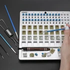 Durable Aluminum Construction. Unlike other lube stations on the market, switch lube station is made of aluminum alloy that is much more durable and stylish than acrylic ones. Switch Opener Included.Our improved switch lube kit includes a switch opener, which is compatible with an array of switch types, including Cherry MX, Kailh, Gateron, Outemu, TTC, Tealios, and the popular Zealios and Holy Pandas switches. Efficient Switch Lube Kit. Our keyboard switch lube station is designed to facilitate the lubrication of up to 32 switches at a time. This efficient station can swiftly and easily lubricate 32 MX switches simultaneously. This switch lube station can accommodate both housing bottoms and switches for lubrication. Non-Slip Base. The lube station is equipped with four silicone corner pads at the bottom, which protects your desktop surface from scratches, while also keeping the lube station securely in place during use. Package Contents. The packages includes 1xkeyboard lube station, 1x keycap and key puller, 1x stem holder (4 prongs grabber), 1x tweezers, 1x keyboard cleaner brush, 2x lubrication pens.