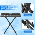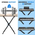 【Adjustable height】This electronic keyboard stand has 7 adjustable heights, and the easy-to-use pull knob can release and fix the center pin. Just pull the pull knob to both sides (the height you want to adjust) to adjust the height quickly and easily. 【Portable and detachable】The structure design of the stand is simple, the double x structure can be folded, and the overall packaging volume is small after the support rod is simply disassembled, which makes it easy to carry when you go out for performances, and easy to store and organize after use at home without taking up space. 【 High-quality material】 The electronic keyboard stand is made of high-quality steel, and the surface is treated with a strong coating, which makes the electronic keyboard stand anti-corrosive, and the material is hard, resistant to falling and not easy to deform, and can be used for a long time. 【Stable and safe】The square double rods of the stand are thickened and thickened, which enhances the overall durability of the piano stand, and the double X structure enhances the stability of the stand itself. The anti-slip cover can maintain the overall balance of the piano stand during the performance, and the lock belt can fix the electronic keyboard to prevent the keyboard from falling. 【Wide application】this stand can be widely used in band practice, band performance, studio practice, stage and DJ performance, and can also be used for a variety of different instruments. It can match various sizes of electric pianos, including 57, 61, and 88-key electronic pianos. Whether you are a professional or an amateur, this stand is your best choice.