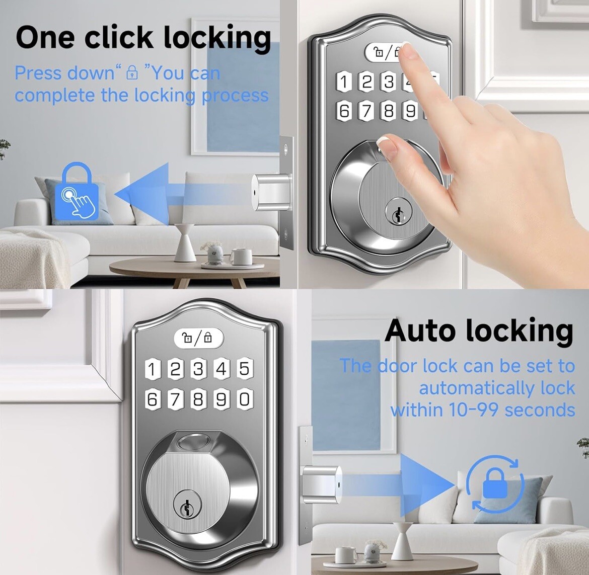 This keyless entry door lock deadbolt with lever set is the perfect addition to your home security. With a sleek silver color and made of durable aluminum and nickel materials, this lock is suitable for your front door and offers universal mounting options. The set comes complete with a deadbolt and lever, making it easy to install and use. Designed for convenience and security, this lock is ideal for those who want to eliminate the need for keys or for those who want an extra layer of protection. Whether you’re looking to upgrade your home or simply want to add an extra layer of security, this keyless entry door lock deadbolt with lever set is the perfect choice.