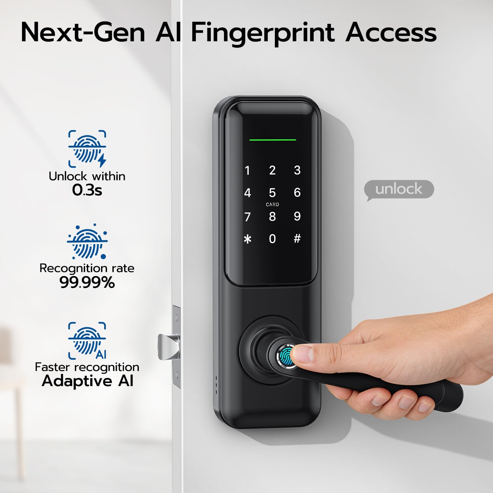 [Ideal Replacement for Locksets]: Traditional smart locks often fall short when replacing deadbolt sets or handle sets due to their small size, which can't fully cover both holes of the deadbolt locksets. However, the Nyboer smart lock stands out with its ultra 9 1/4 inch extended panel, providing complete coverage of the existing 2 holes. This makes it the ideal replacement for most front locksets, no need to fill in old lock holes or leave exposed door holes. [7 IN-1 Smart Lock]: Nyboer smart lock offers diversified options for access: Fingerprint+Smartphone App +Passcode+Key Fob+Mechanical Key+WiFi Remote Control (Wifi gateway required), also compatible with Alexa or Google Assistant to voice control. [Complete Control from App]: Use the App to lock and unlock. Make it easy for you and everyone to come and go, you can share virtual keys and timed passcodes, and grant or revoke user access anytime via the App. Get access logs of locks to know who’s coming and when with what method. [Add-Feature for Business]: Companion app and website with a convenient control center where you can easily synchronize all of your locks for management.No need to deal with frequent key exchanges, keyless entry smart lock gives you the ability to create timed access codes for guests, perfect for rental properties, Airbnb hosts and office use.
