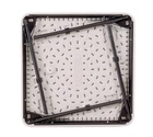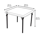 Constructed of High Density Polyethylene for superior strength and durability; Backed by a 1-year limited manufacturer Lightweight design; Designed for children ages 3-9. Rust-resistant powder-coated Steel frame Uv-protected top is stain resistant and easy to clean Folds flat for easy storage and transportation; open dimensions- 24" L x 24" w x 21" H; closed - 24 in. W x 24 in. D x 2 in. H All-weather resistant; designed for indoor and outdoor use