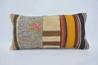 Kilim Pillow Cover, Gift Pillow, 12"x24" Orange Pillow Sham, Kilim Pillow
