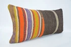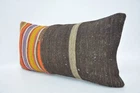 Kilim Pillow Cover, Pillow Sham, 12"x24" Brown Cushion Case, Pillow for Sofa