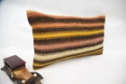 Kilim Pillow Cover, Turkish Kilim Pillow, 12"x20" Brown Pillow